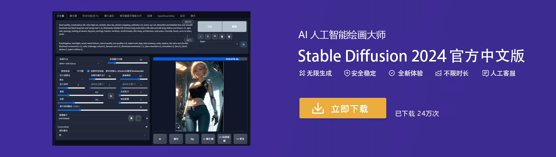 Stable Diffusion 2024 AI人工智能绘画大师 无限次生成